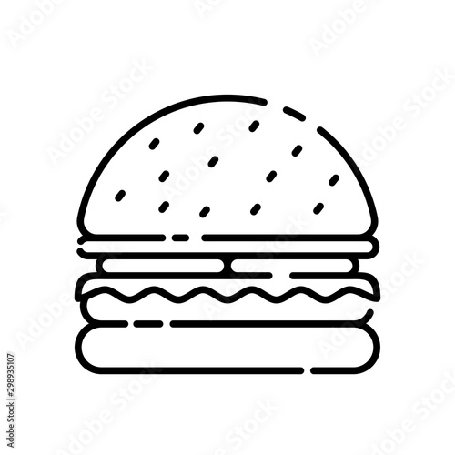 Burger vector illustration with simple black line design. Burger icon, fast food icon
