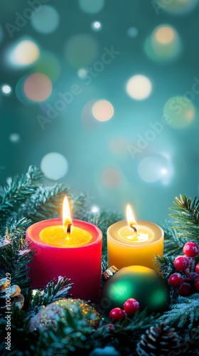 Burning Advent Candle - Abstract Christmas Background - First Advent Sunday - Vertical, upright format with copy space