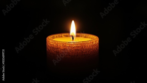 Burning candle in the dark. Concept of memory, hope, and remembrance.
