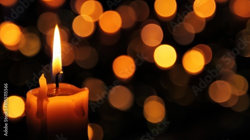 Burning Candle with Bokeh Lights