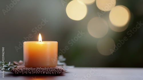 Burning candle with soft bokeh background for relaxation : Generative AI