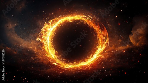 Burning Ring of Fire in Deep Space Fiery Cosmos with Sparkling Stars and Dark Background