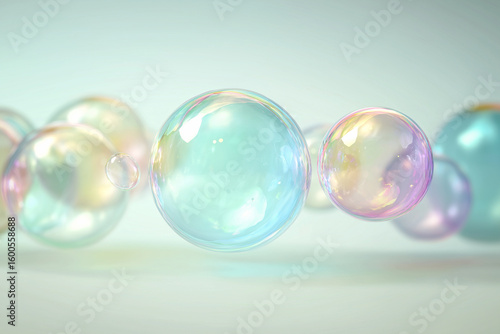 Bursting Water Droplets and Floating Soap Bubbles in Cool Dreamy Summer Circular Background