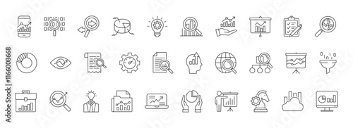 Business Analysis line icon set. Included Analyzing, Data, Research, Examining, Chart, Diagram, Expertise, Planning, Advice. Vector illustration.