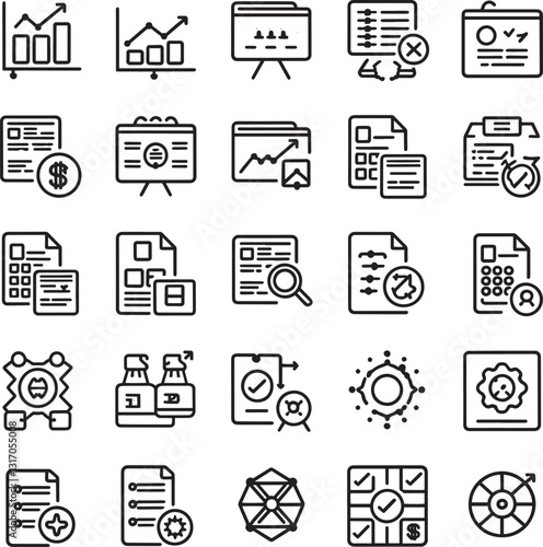 Business Analytics and Data Management Line Icons Set - SEO, Finance, and Strategy Vector