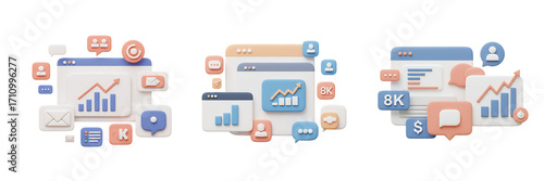 Business Analytics Dashboard 3D Icons On Transparent Background