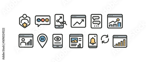 Business, analytics flat icon set. data visualization, reporting icons collection