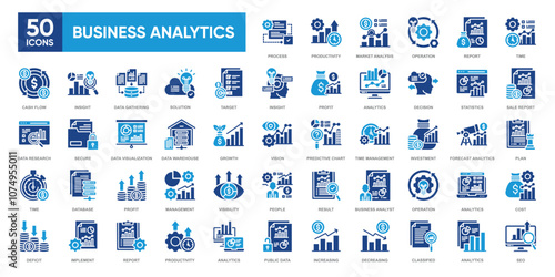 Business analytics icon collection set. Editable stroke illustration. Vector ui and web icon.