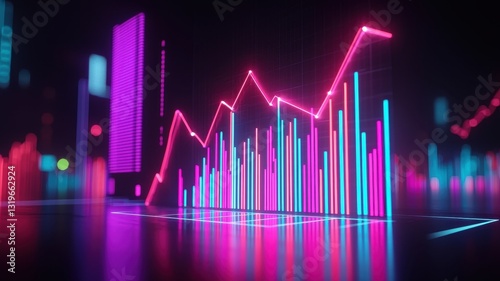 Business and commerce expansion. Vibrant neon graph showcasing data trends and statistics in a digital format.