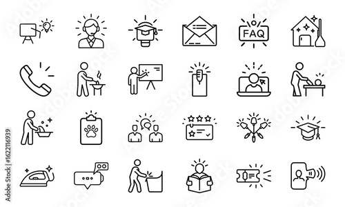 Business and Data Analytics Line Icons Set with Light Up Effect – KPI, Graphs, Charts, Marketing Strategy, Report, Cloud, Planning, and Performance Metrics Symbols on White Background