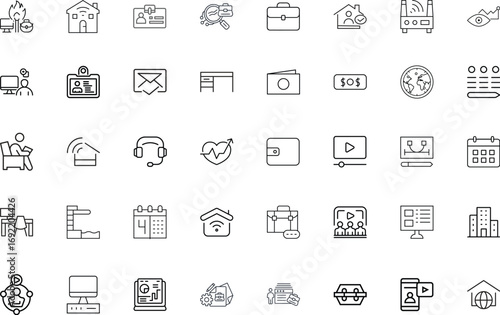Business and Finance Vector Line Icons Set – Office, Technology, Communication, Remote Work (EPS)
