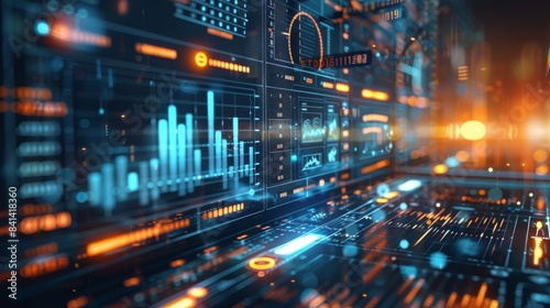 Business and Financial Data Analysis, A graphic interface depicting the future of profit analytics, online marketing research, and digital business strategies. Generative AI.