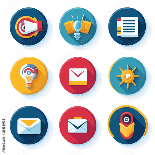 Business and Marketing Flat Icons Set, Strategy, Idea, Message