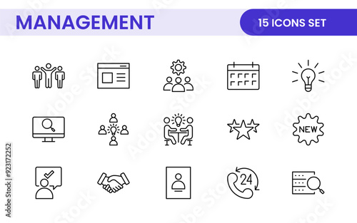Business and office management Outline Icon Collection. marketing, strategy, teamwork, planning, business, training, office icons illustration.