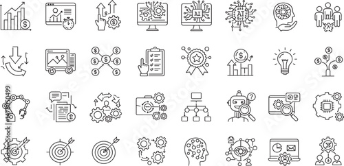 Business Automation Line Editable Icons set. Vector illustration in modern thin line style of technology related icons: optimization, robotic integration, business model, and more.
