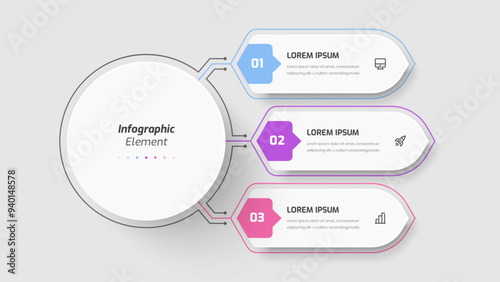 Business Central Circle Infographic Presentation with Abstract Design, 3 Numbers, and Icons