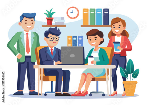 Business characters team work office people vector image. Isolated on white background.