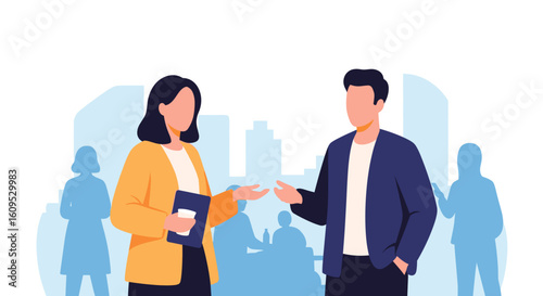 Business colleagues having a conversation, ideal for a corporate website or presentation.