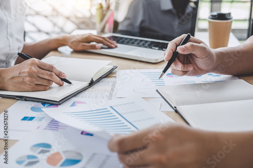 Business colleagues meeting to conference professional investor working a new marketing business strategy project discussion and analysis data chart and graph, finance and accounting concept