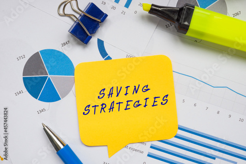 Business concept about SAVING STRATEGIES with inscription on the sheet.