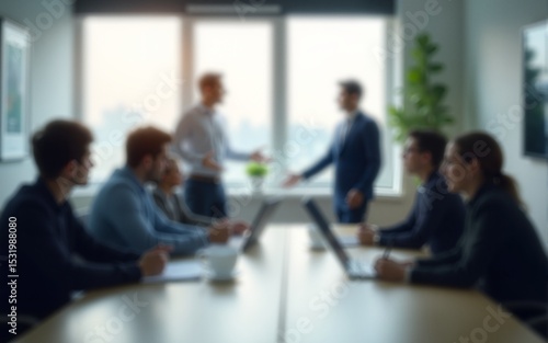 Business concept. Business meeting in boardroom. Blurred people on background. Team meeting in office near table. Generative AI. High quality