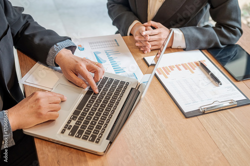 Business concept. Business people discussing the charts and graphs showing the results of their successful teamwork.