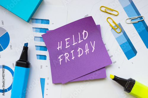 Business concept meaning HELLO FRIDAY with phrase on the page.