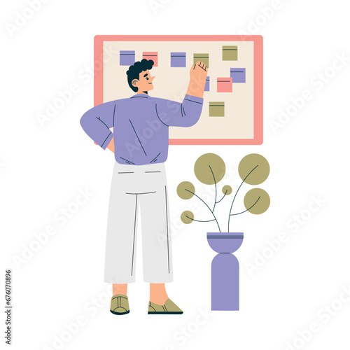 Business Concept with Man Character at Task Board Vector Illustration