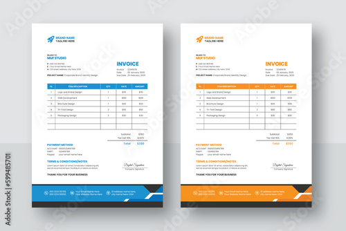 Business corporate creative invoice template. Business invoice for your business, print ready invoice template. minimal yellow and blue invoice template vector design