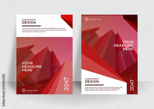 Business cover report template with modern red white corporate concept. Minimalist cover design style set. Can be use for business annual report, name cade, flier, banner