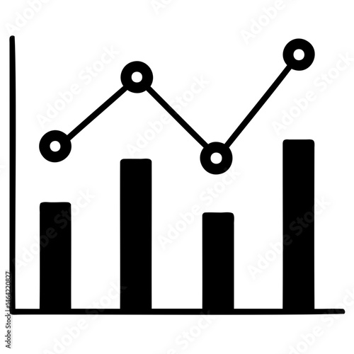 Business data analysis bar chart and line graph for financial performance and market trend visualization isolated on transparent background