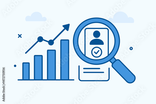 Business due diligence concept vector illustration showing financial growth analysis and verification process with magnifying glass scrutinizing documents for compliance and investment research.