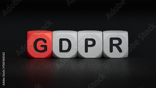 Business gdpr concept. Hand and fake on wood cube block.close up of wooden elements,Business Concept.3D rendering on black background.