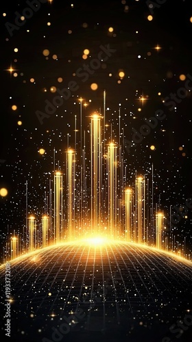 Business Graph: Painting light design of dynamic upward graphs merging into a glowing golden ring, symbolizing success and innovation in business metrics
