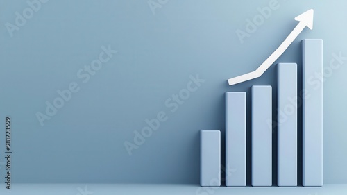 Business graph, with upward trend, 3D illustration, copy space for text,