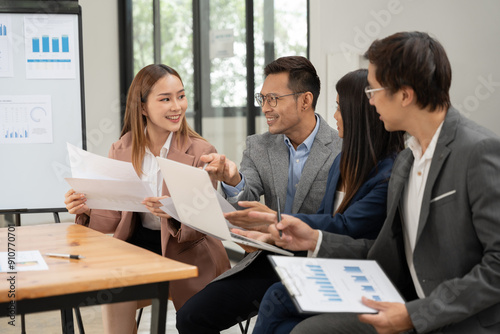 Business group Talk and consult to find solutions to work problems in the company.