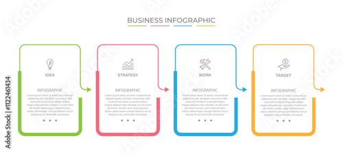 Business growth arrow template. Infographic 4 steps to success. Vector illustration.
