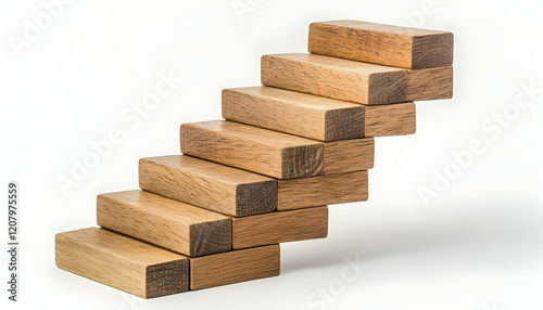 Business growth concept with wooden block stairs symbolizing planning, leadership, and development