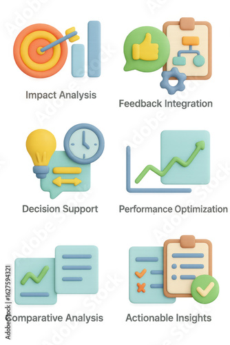 Business growth icons highlighting analysis, feedback, and optimization in modern style