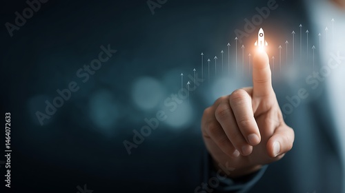 Business Growth Success Startup Launch Concept Hand Touching Rocket Icon Rising Graph