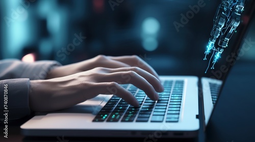 Business hand men typing on laptop keyboard in the office room. Global network connection and international business concept.
