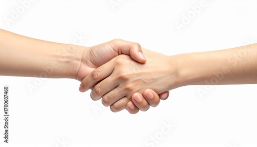 Business handshake concept with two people shaking hands in agreement, representing partnership, cooperation, and successful negotiation