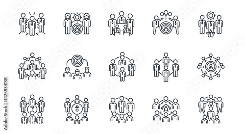 Business Icons Set - Clean Line Icons Representing Meetings, Goals, Innovation, and Strategy