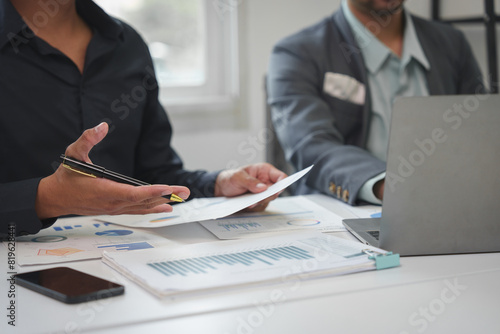 Business idea. Business people talking And calculations about charts and graphs showing the growth of investment results Of successful teamwork