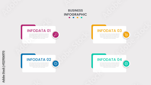 Business Infographic design template Vector with icons and 4 four options or steps. It can be used for process diagrams, presentations, workflow layouts, banners, flow charts, infographics