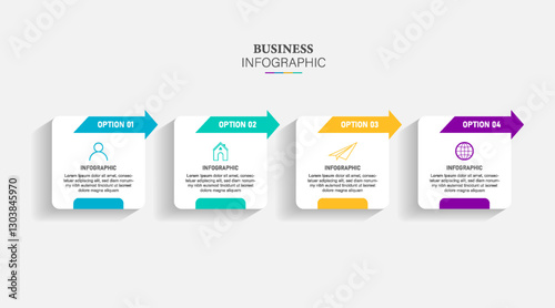 Business infographic design template with 4 steps or options using for process diagram, workflow layout, flow chart, infograph and banner