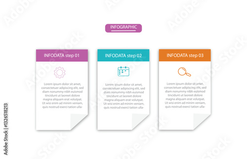 Business infographic template. 3 Step timeline journey. Process diagram, 3 options on white background, vector illustration.