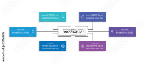 Business infographic template. 6 Step timeline journey. vector illustration