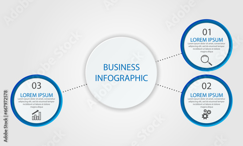 Business Infographic Template Design. Time line minimal concept with 3 option steps and marketing icons. Vector linear infographic with three connected elements. Can be used for your business gifts