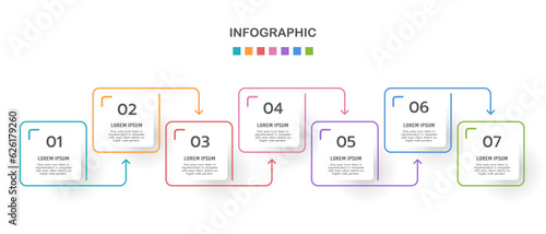 Business infographic thin line process with square template 7 options or steps to success. Business Presentation. Vector illustration.